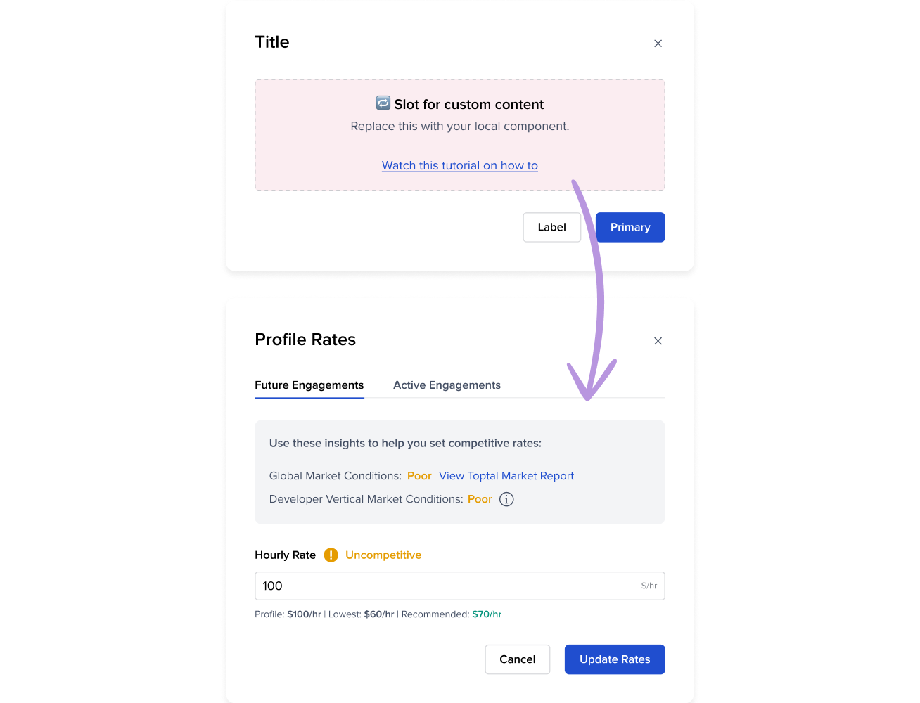 I also introduced slot components which are flexible containers that allows product teams to plug in their own content without detaching from the main system. This small change had a huge impact on speed and adoption, giving teams the freedom to move fast while keeping the design language intact and respecting paddings, margins etc.