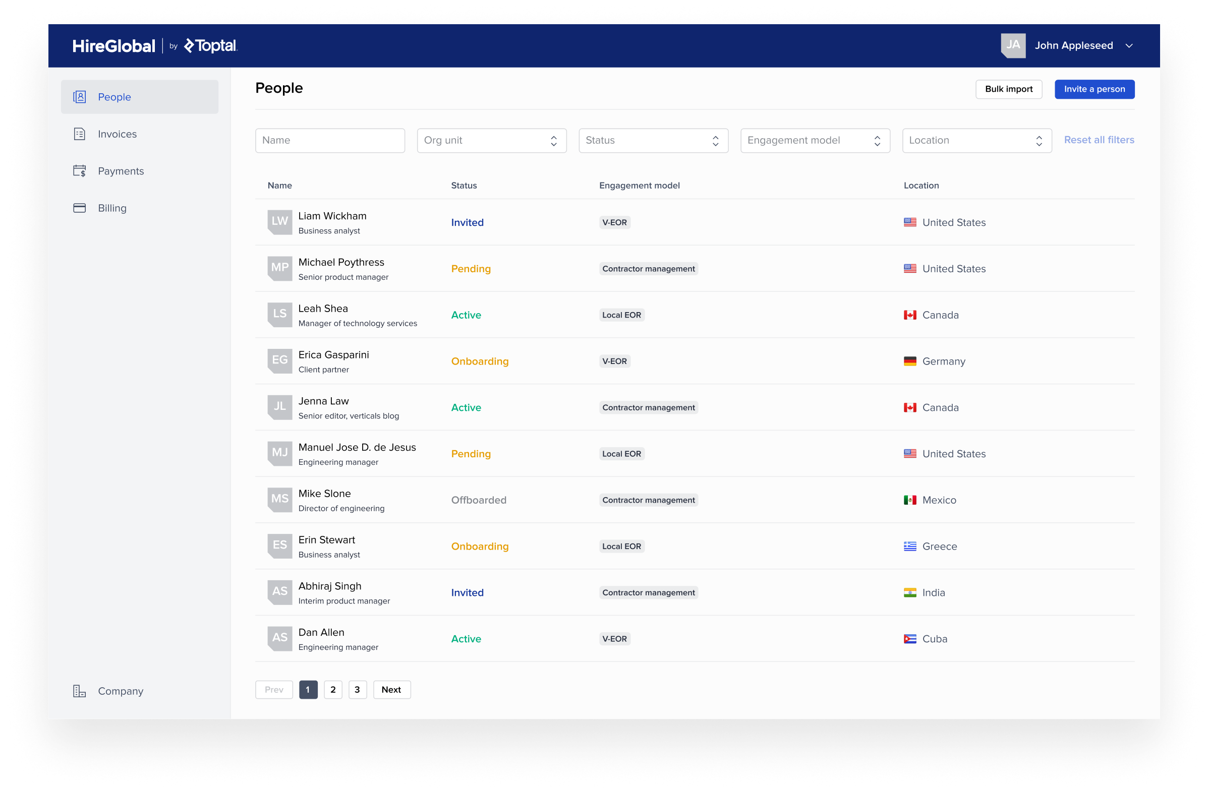 In Q1 2024, Toptal launched a new HRIS and payroll system saas tool called HireGlobal. It was a high-stakes project with tight deadlines and ambitious goals. Thanks to the strong foundation of the BASE Design System, the team was able to move from concept to launch in under two and a half months.