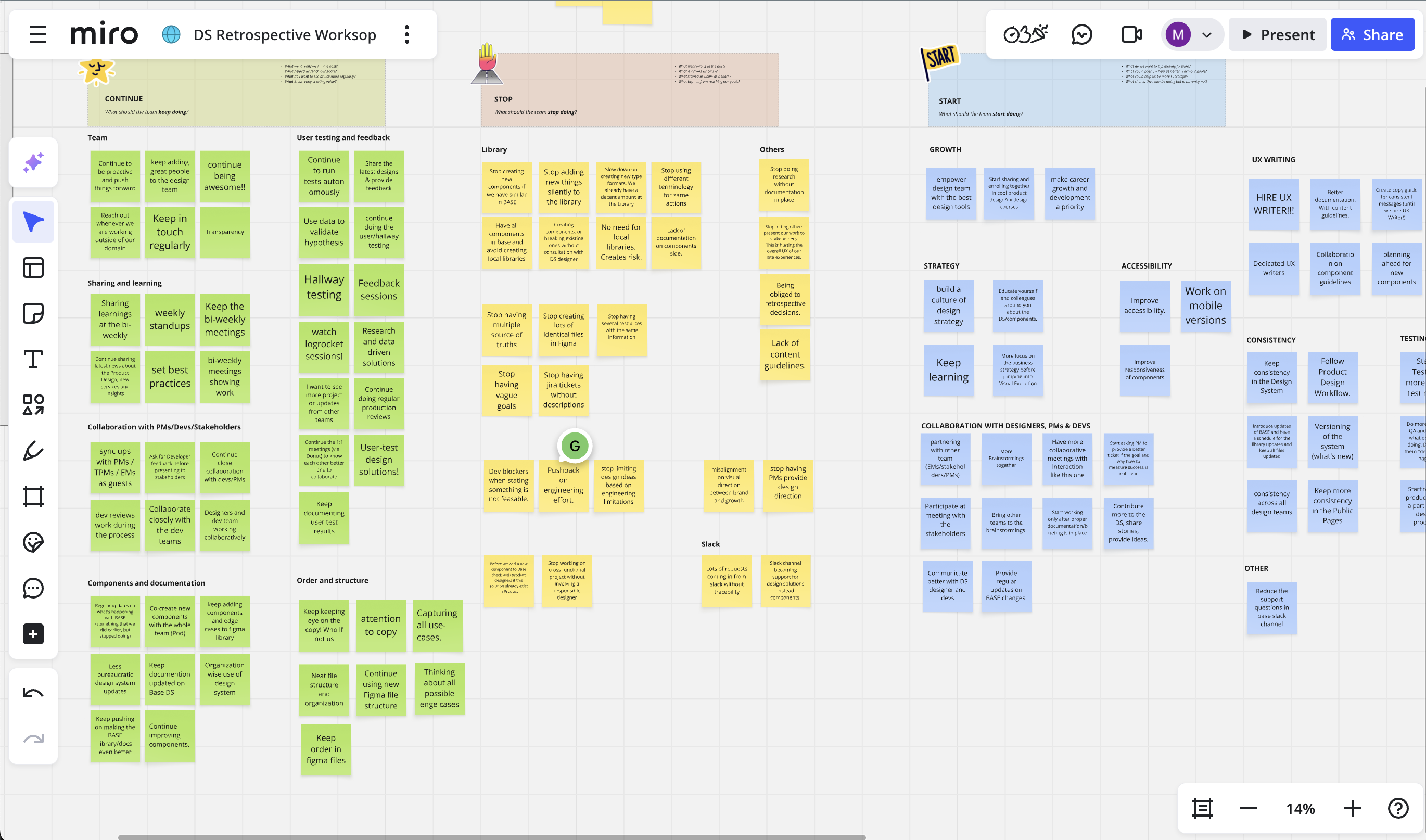 I spent my first few weeks observing, listening and learning. I've read through hundreds of messages on a dedicated ds slack channel, to gauge a sense of what are some FAQs. I also joined product team rituals, interviewed designers and developers, created retrospective workshops and mapped how the existing system was being used in real projects. This revealed where the friction was most acute